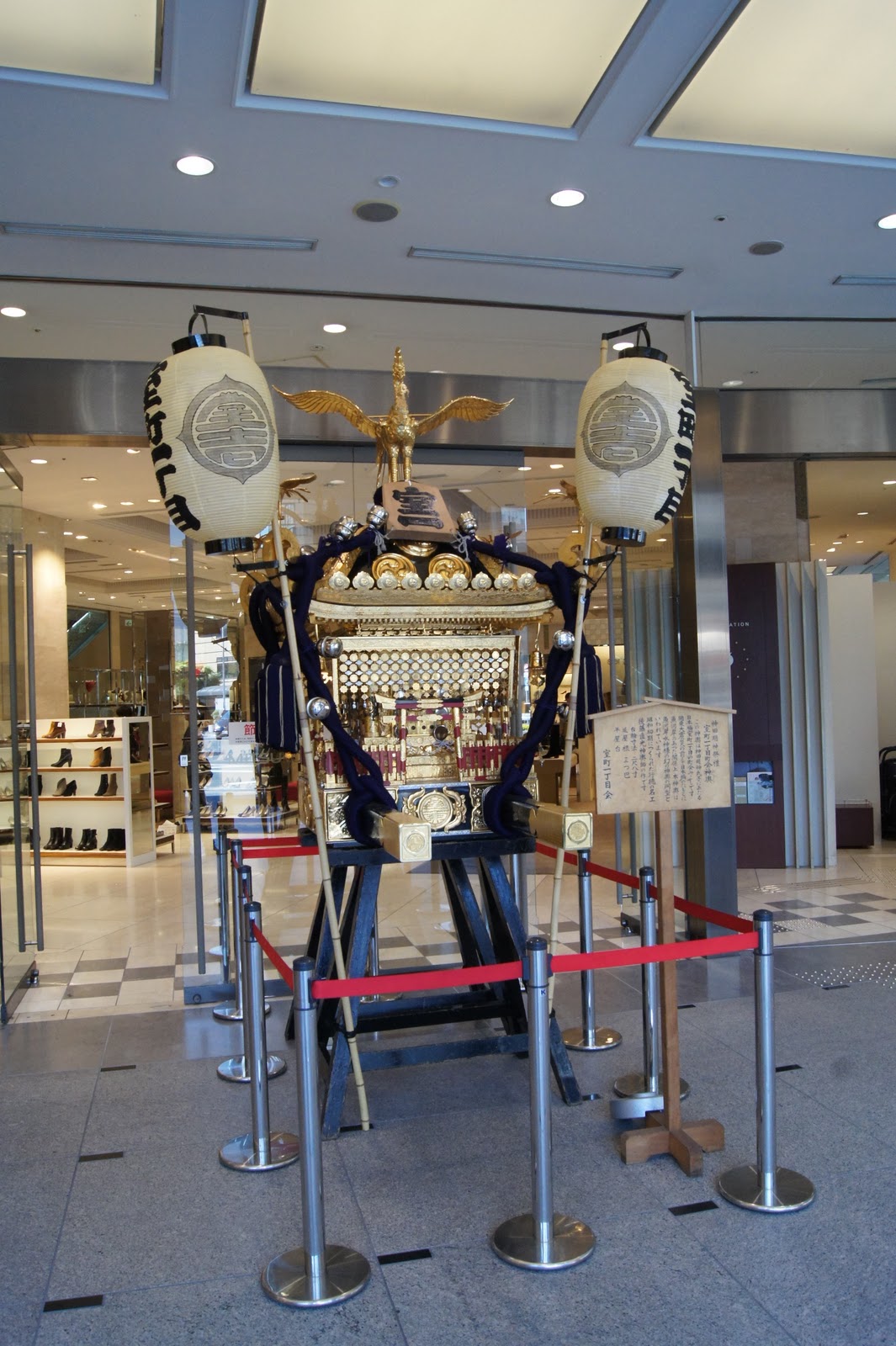 門口剛好有金碧輝煌的神轎展示~~